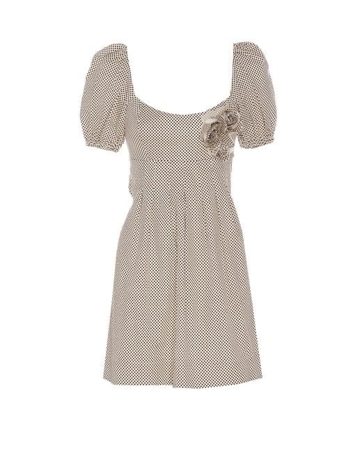 - Embroidered Cotton Dress With Polka Dots And Roses