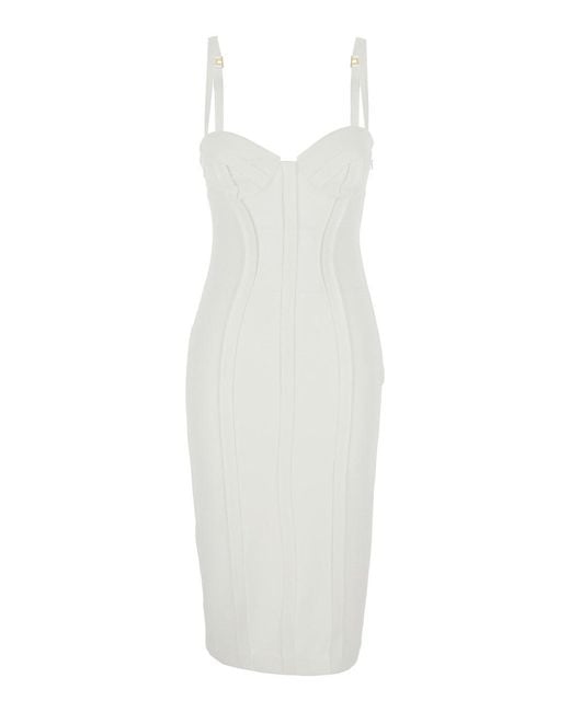 Women's White Sleeveless Dress With Bustier Neckline And Re