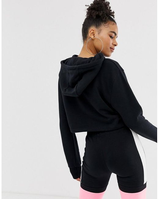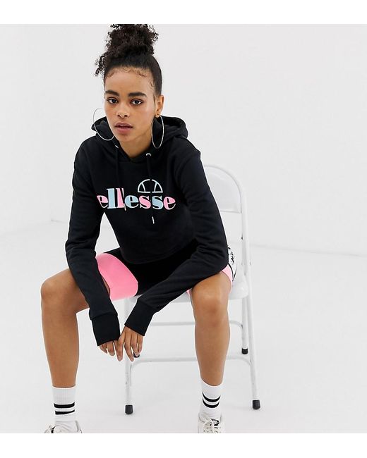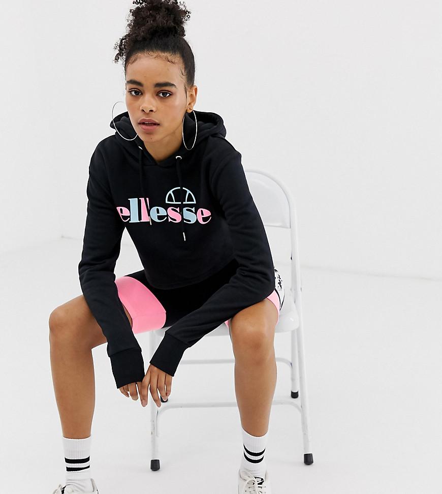 Hoodie by ellesse, A great chill-out buddy, Drawstring hood, Dropped shoulders, Branded print, Cropped length, Relaxed fit, Think baggy and casual. Remember the '90s when you weren't anyone if you didn't own an ellesse sweatshirt? Well, streetwear fans take note because we've come full circle and the Italian brand is back in a big way. Crop tops, joggers and track jackets get the iconic ellesse logo treatment. Cotton/ polyester/ print. Colour: black