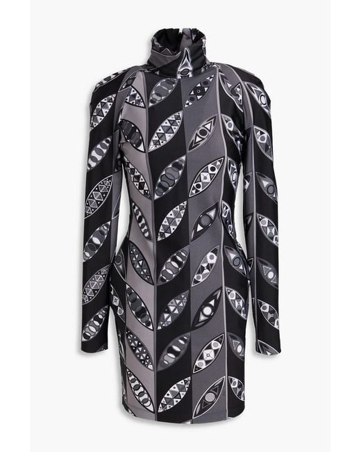 - Printed Stretch-jersey Mini Turtleneck Dress