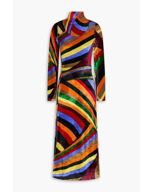 - Printed Stretch-Velvet Midi Turtleneck Dress
