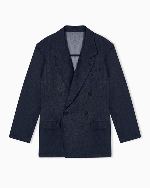 Men's Blue Denim Capsule Collection Lyocell-Blend Double-Breasted Jacket