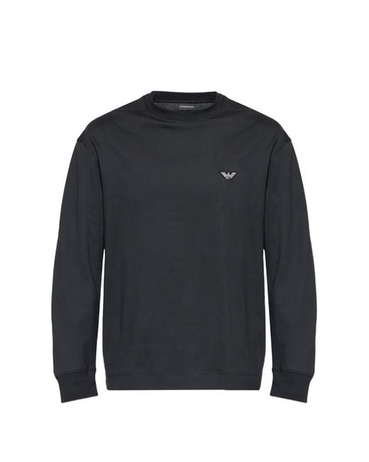 Black logo appliqué long sleeves round neck Size: S. Gender: Male. Material:Cotton. Colour: blue