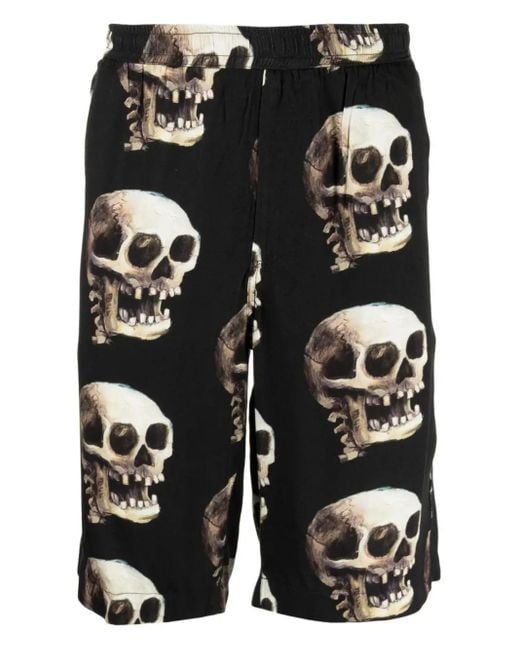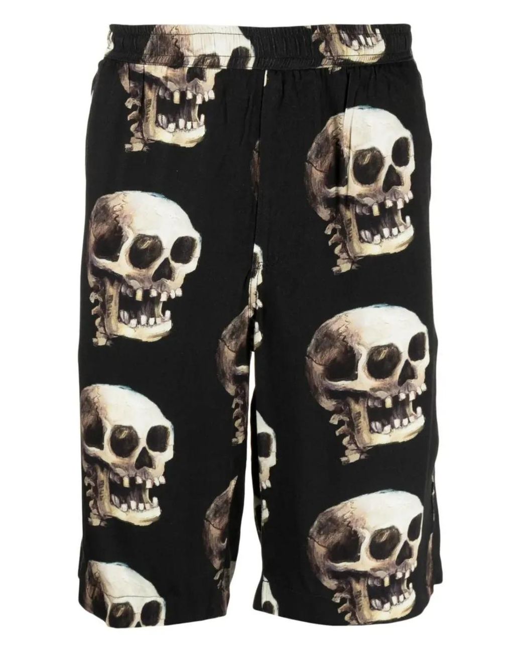 Men's Black Skull-Print Elasticated-Waist Shorts