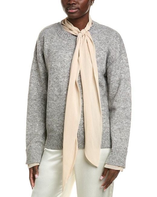 Women's Grey Contrast Neck Tie Jumper