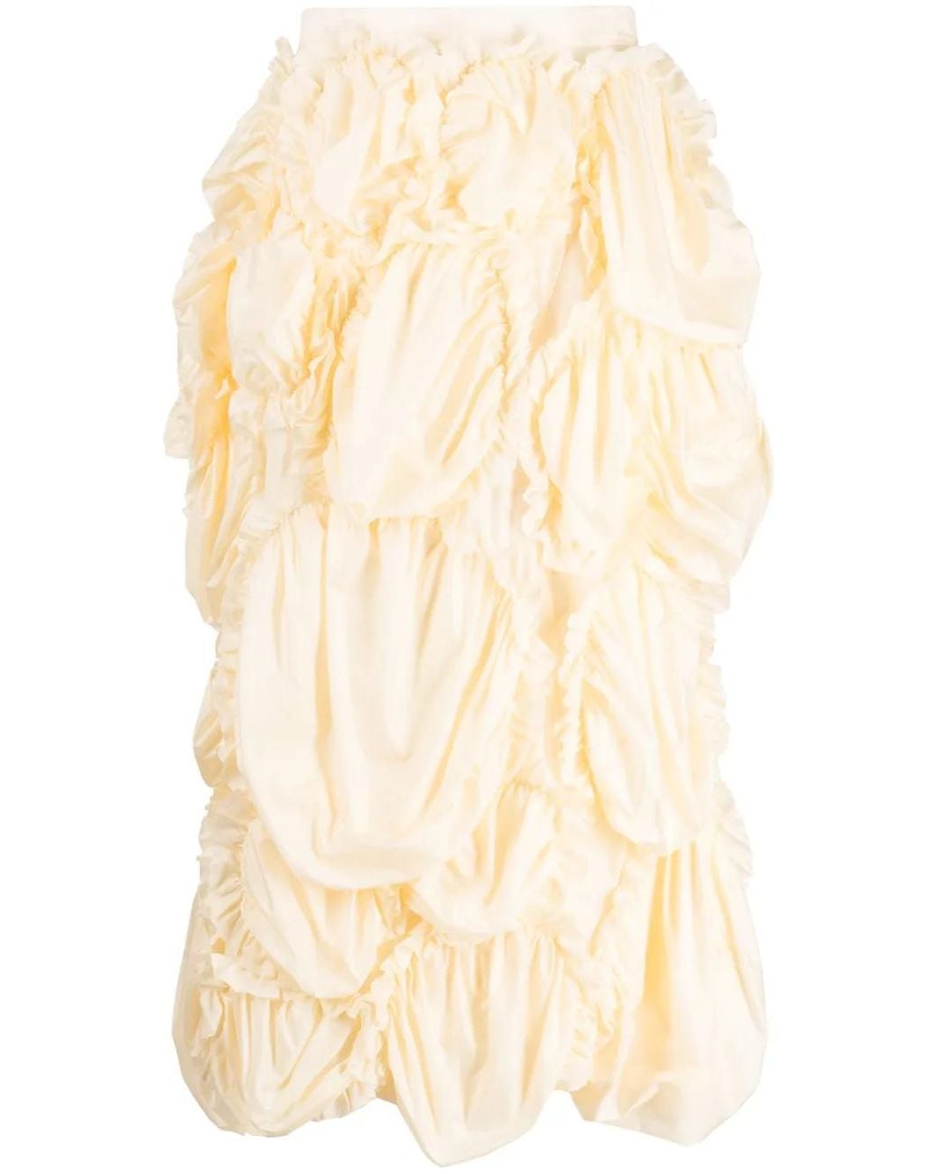 Off-white layered effect ruffled detailing high waist concealed front fastening flared hem mid-length Size: 36. Gender: Female. Material:Nylon/Polyester. Colour: natural