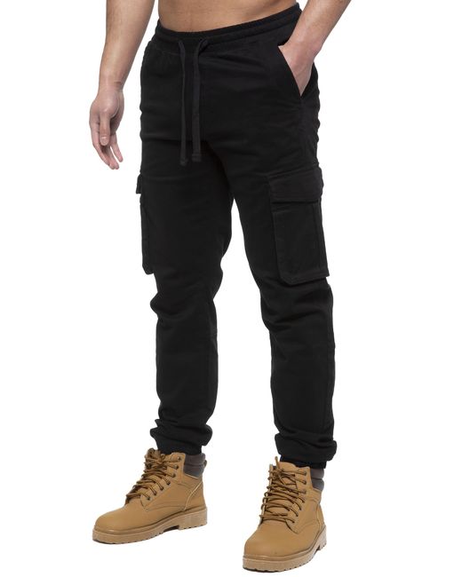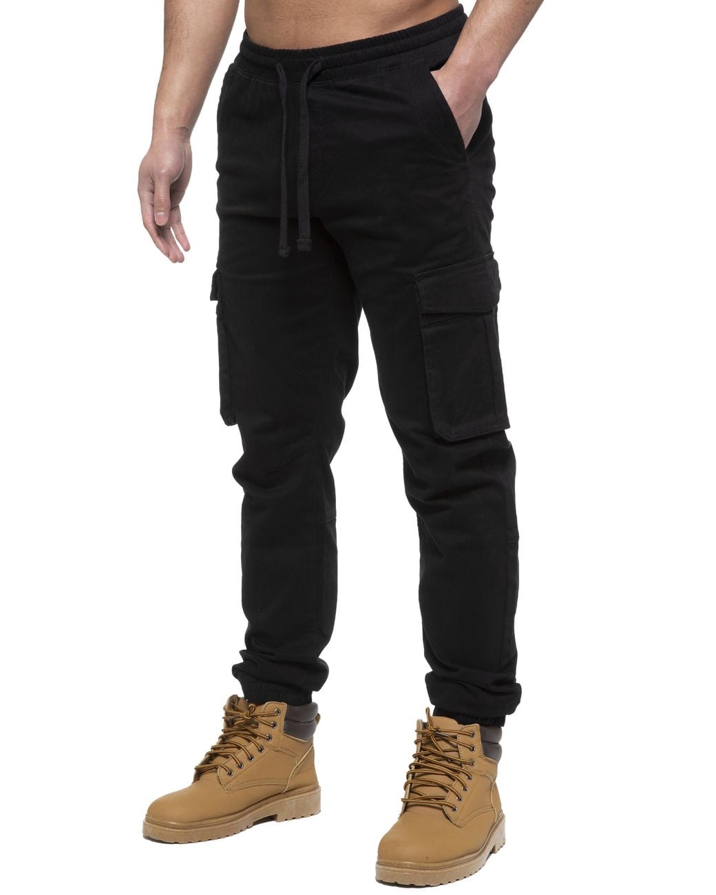 Enzo Mens Elasticated Waist Stretch Cuffed Jeans. Features a 5 Pocket Design. 2 Slash Pockets, 1 Back Pocket 2 Front Cargo, Bellow Side Pockets With Velcro Fastening. Elasticated Waist With Adjustable Drawstings. Cut and Sew Design On Leg. Cuffed Ankle Colour: black