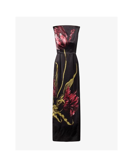 Women's Red Boat-Neck Floral Satin Maxi Dress