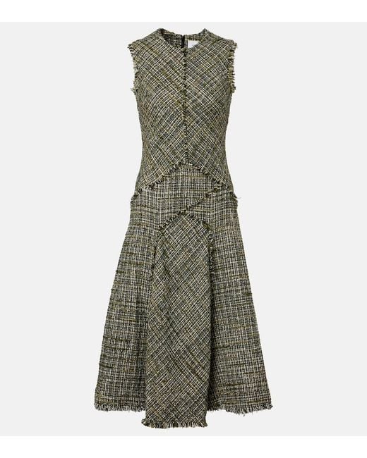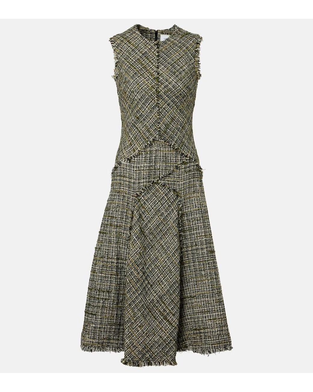 - Draped Tweed Midi Dress