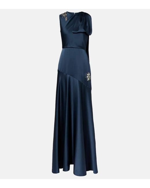 Women's Blue Embellished Scarf-Detail Satin Cady Gown