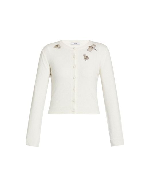 Women's White Embellished Wool-Blend Cardigan