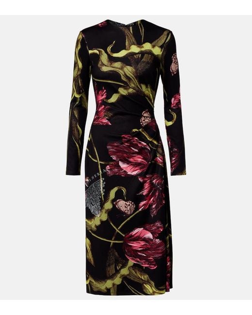 Women's Black Floral Jersey Midi Dress