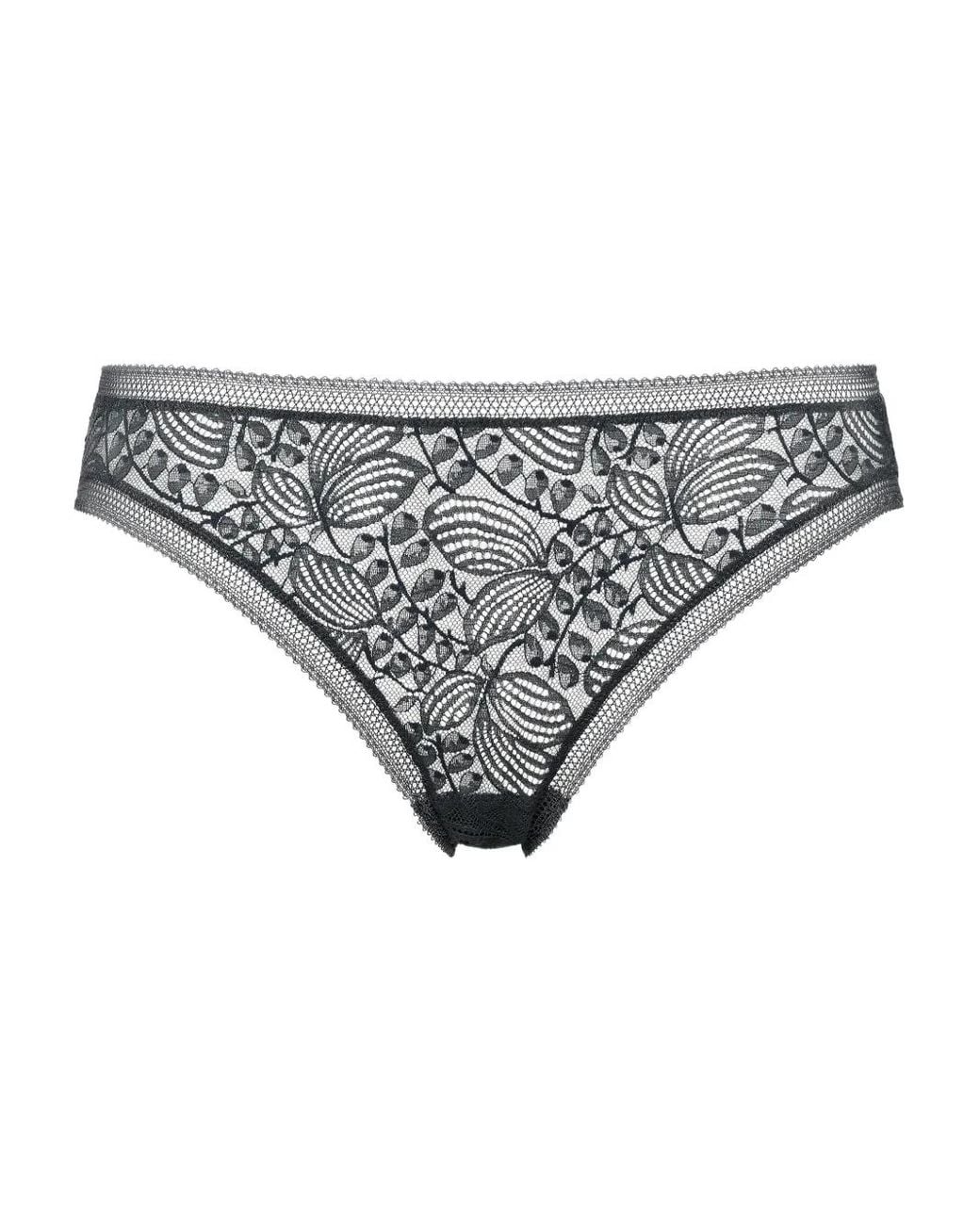 Black floral lace scalloped trim low rise brief cut delicate pattern Just a reminder that this piece must be tried on over your own garments. Size: 36. Gender: Female. Material:Polyamide/Spandex/Elastane. Colour: grey