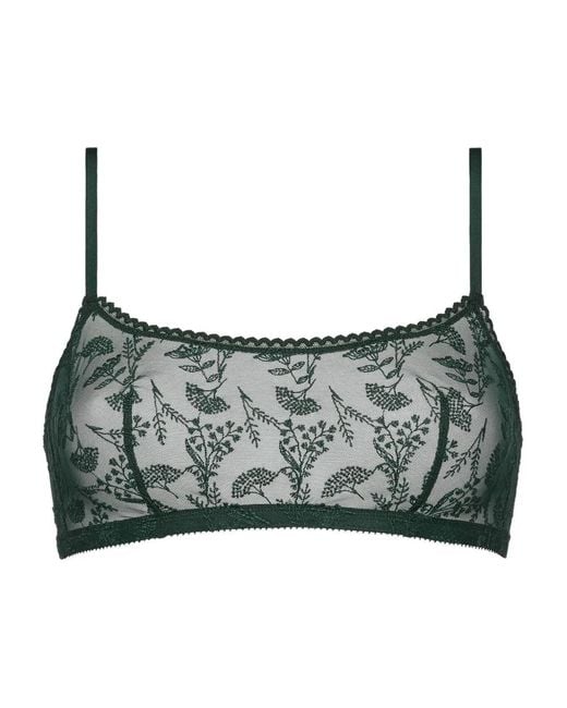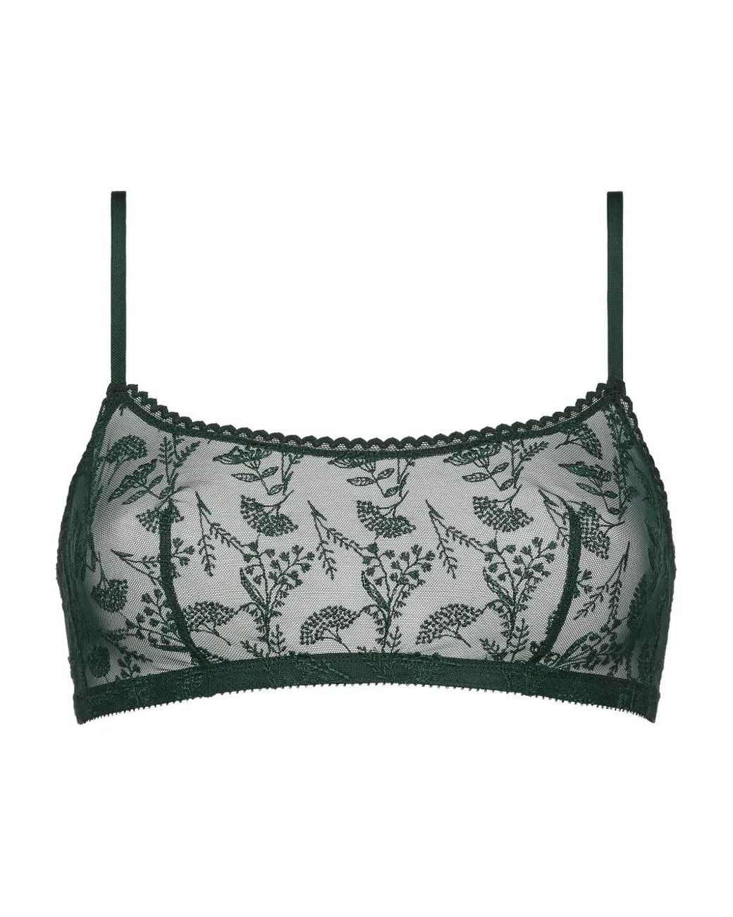 Green floral print scalloped trim adjustable straps hook fastening Size: 85A. Gender: Female. Material:Polyester/Polyamide/Spandex/Elastane. Colour: grey