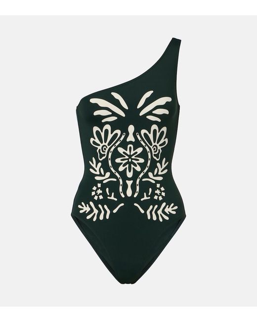 Women's Green Gemme Printed One-Shoulder Swimsuit