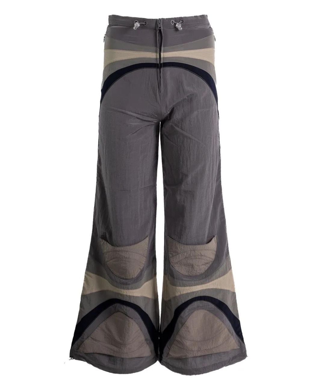 Grey curved panelled design drawstring fastening multiple panels wide leg Size: XS. Gender: Male. Material:Nylon.