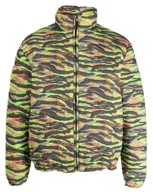 Men's Green Printed Quilted Down Jacket