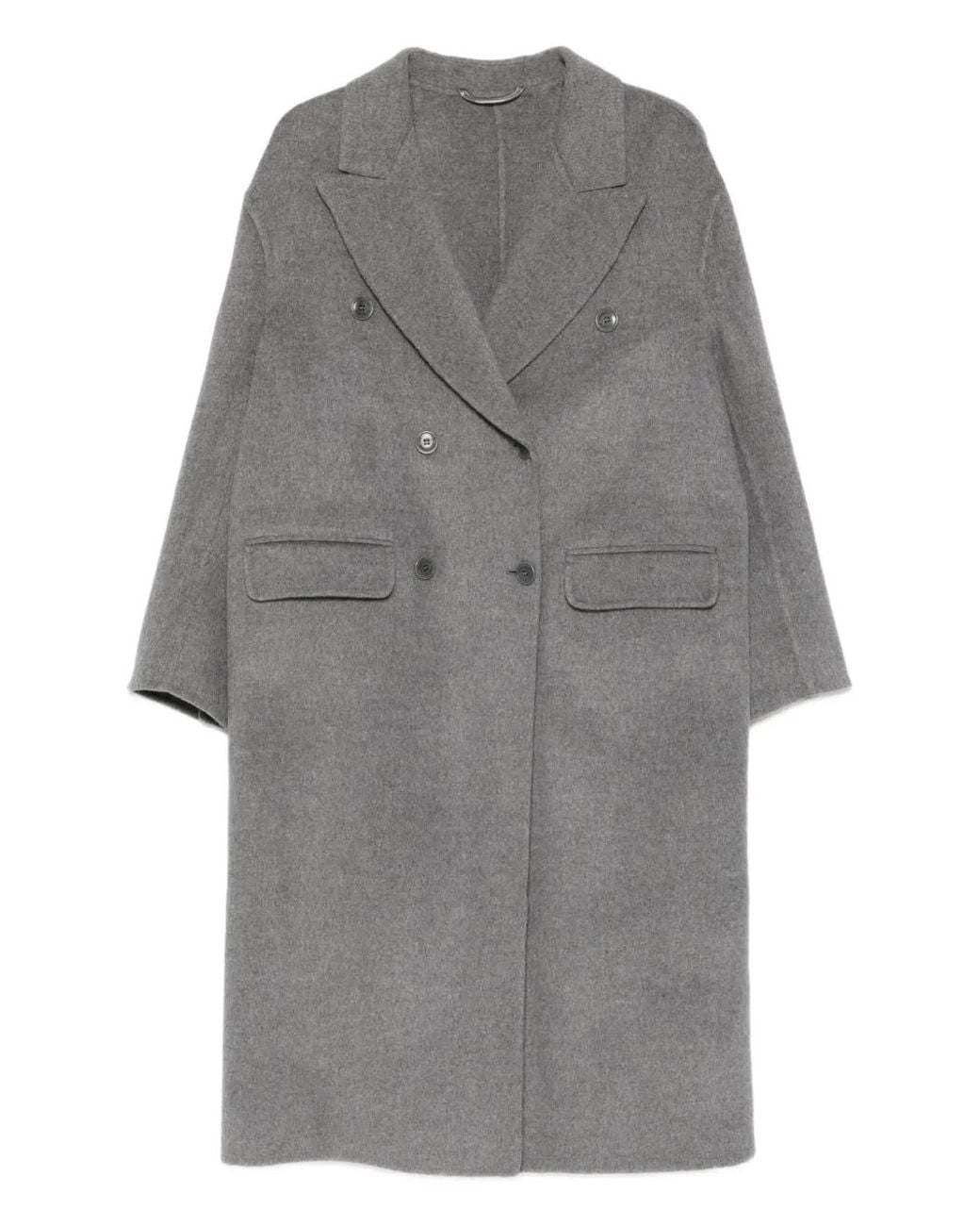 Herringbone-Pattern Double-Breasted Coat - Grey