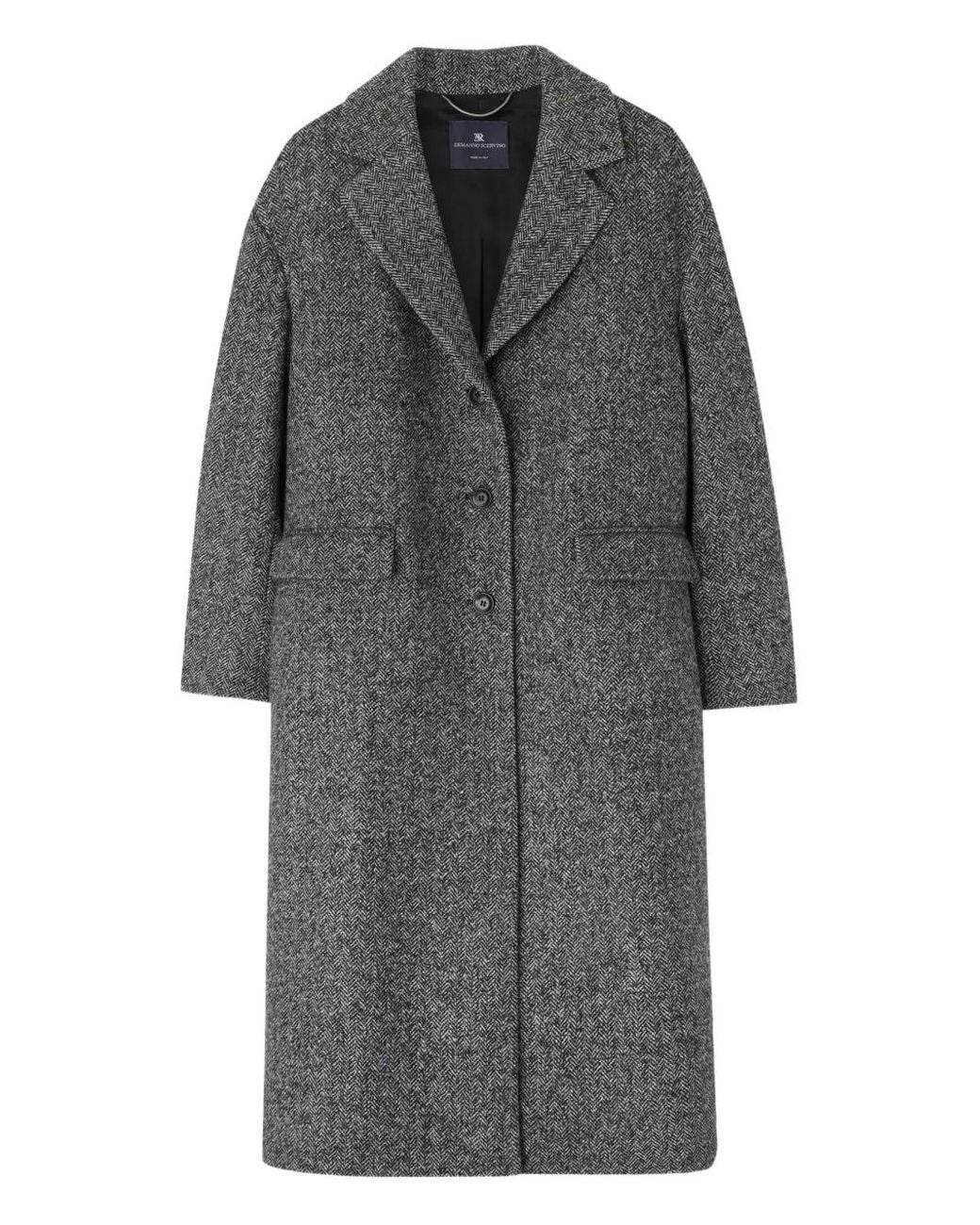 Herringbone-Pattern Coat - Grey