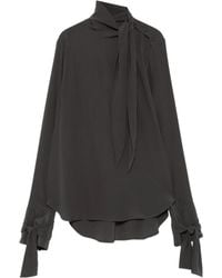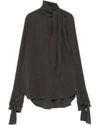 Go to FARFETCHBrown silk tie-neck strap cuffs long sleeves button fastening Size: 36. Gender: Female. Material:Silk. Colour: brown