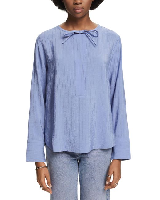The long-sleeved blouse made from an environmentally friendly mix with Lenzing Ecovero is skilfully accentuated by a round neckline with playful tie details. A perfect addition to your must-have wardrobe. Lenzing Ecovero viscose mix LENZING ECOVERO: viscose fibres derived from sustainable wood and pulp and come from certified and controlled sources - breathable, wrinkle resistant and lightweight Lenzing Ecovero are trademarks of Structured. Colour: blue