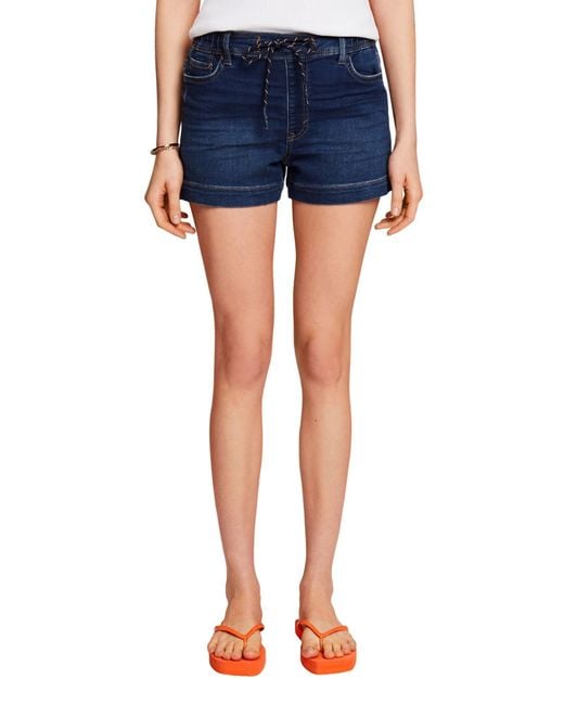 A real Comfy favourite Cotton blend denim with stretch content Elastic waistband with belt loops and drawstring 5-pocket style Name:Denim Jogger Style Shorts.