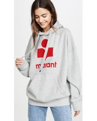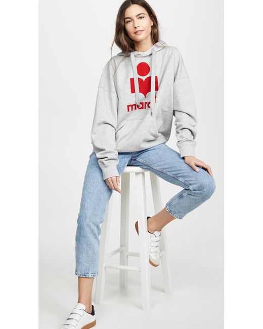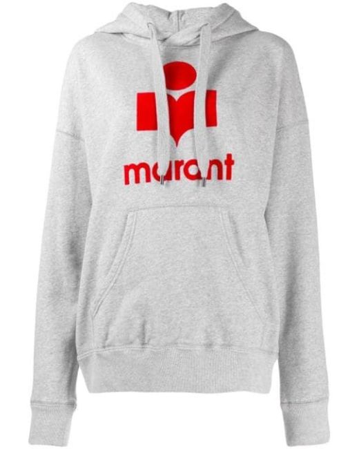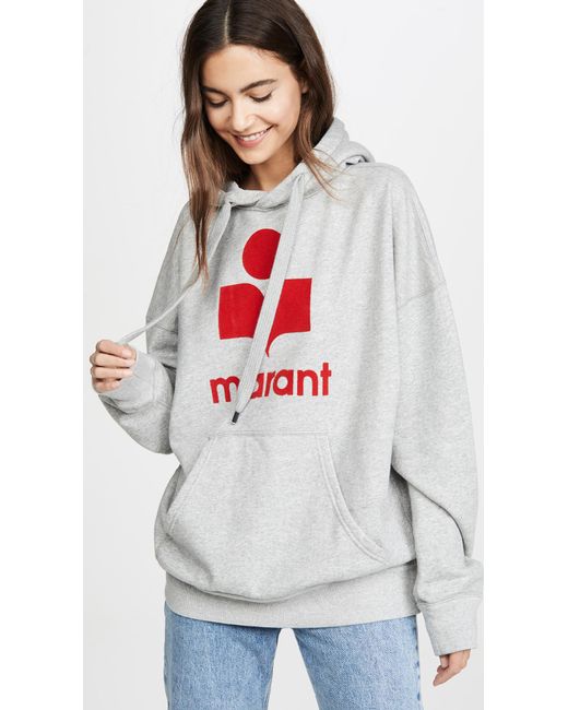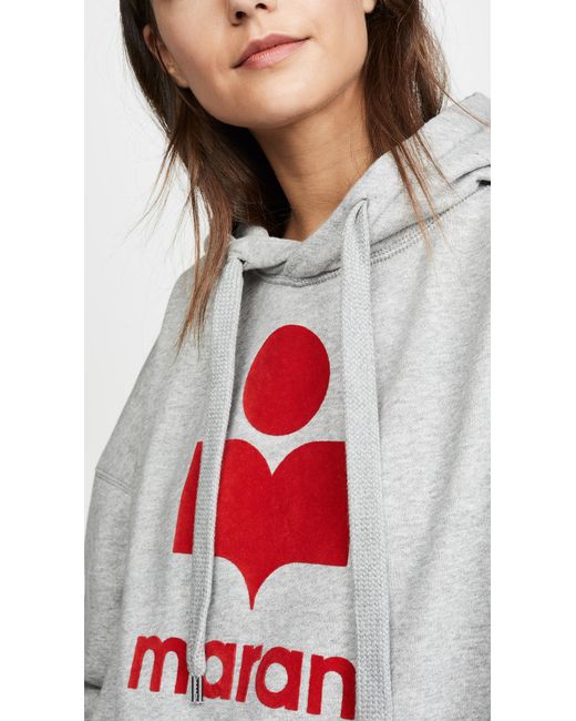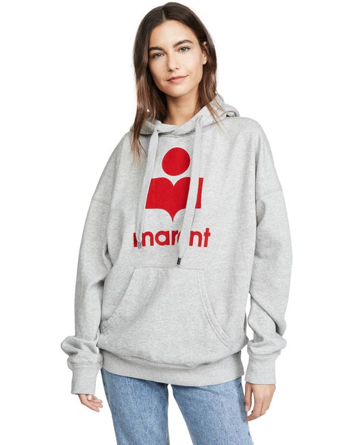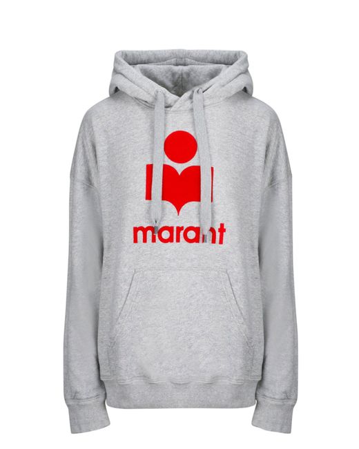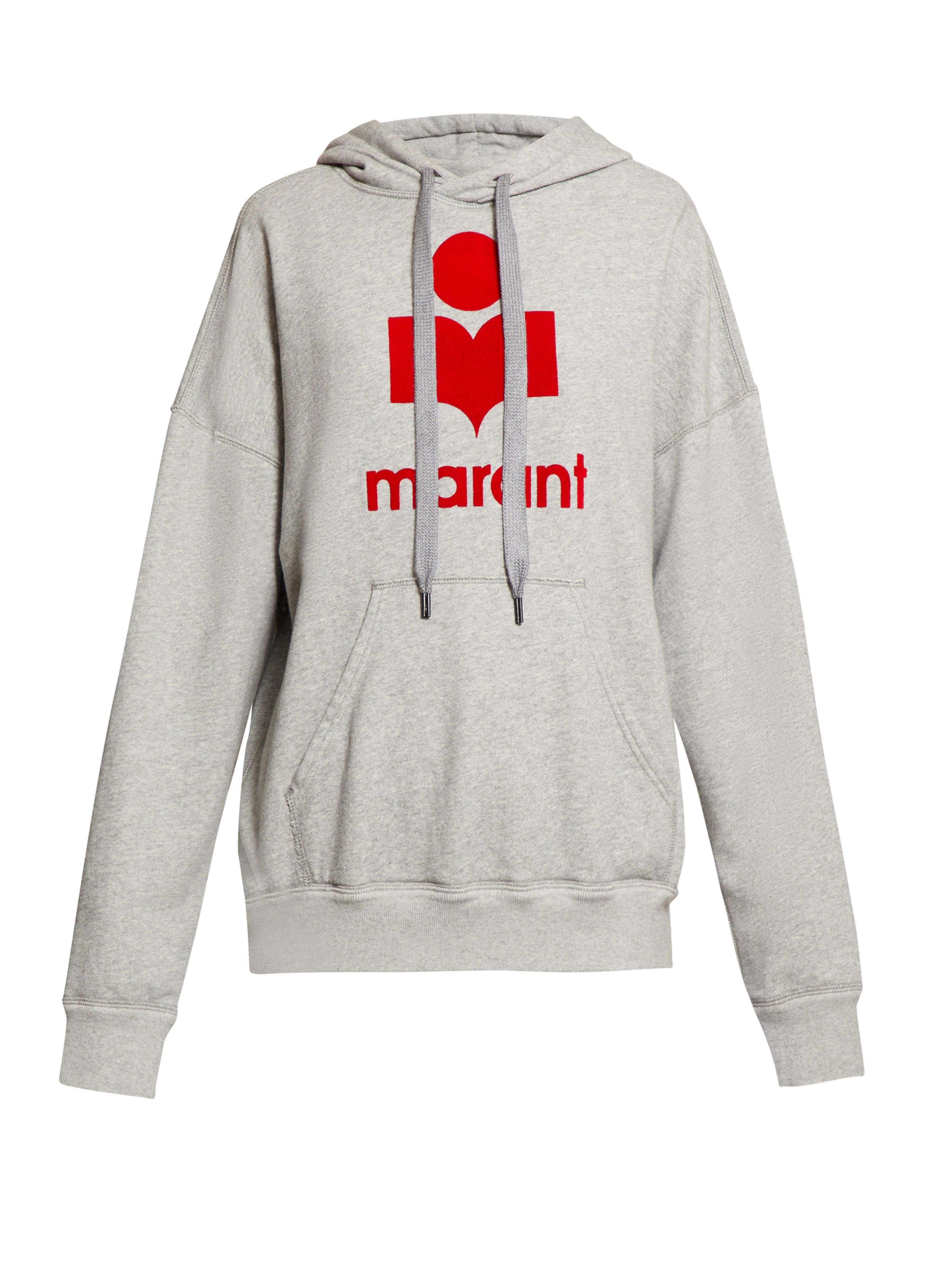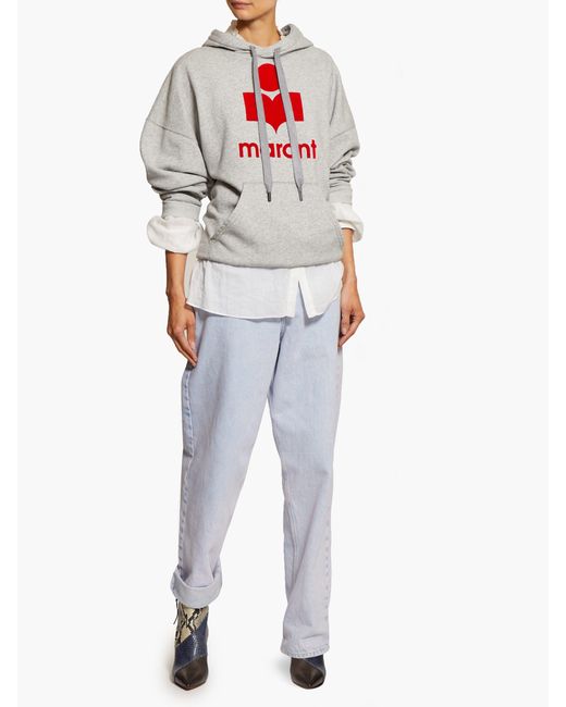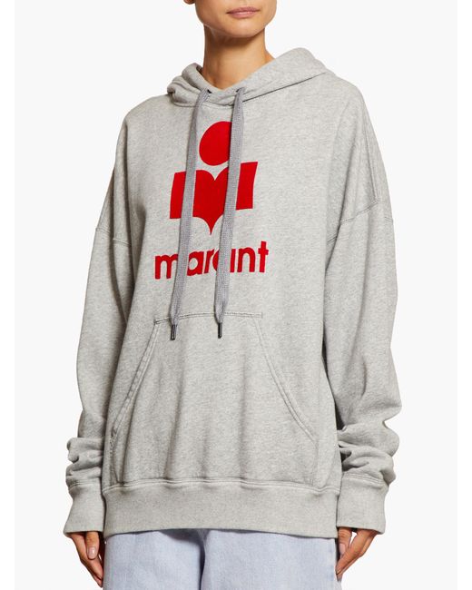 Isabel Marant Étoile - An oversized silhouette and dropped sleeves ensure Isabel Marant Étoile's grey Mansel hooded sweatshirt is ideal for relaxed days. It's punctuated by a graphic red flocked logo and a cosy kangaroo pocket. Layer it over an oversized shirt and jeans for an unstudied weekend edit. MAIN MATERIAL:88% CO.COTTON 12% PL.POLYESTER.
