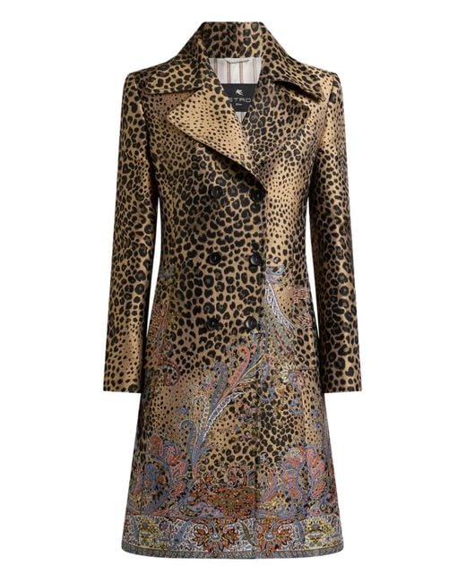 Double-Breasted Jacquard Coat With Paisley And Animal Motif - Multicolour