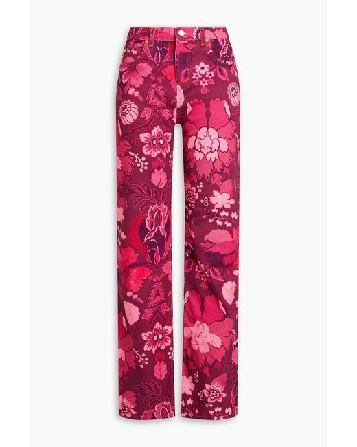 Women's Red Floral-print High-rise Straight-leg Jeans