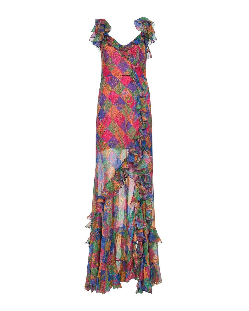 - Geometric Paisley-Pattern Silk Chiffon Maxi Dress