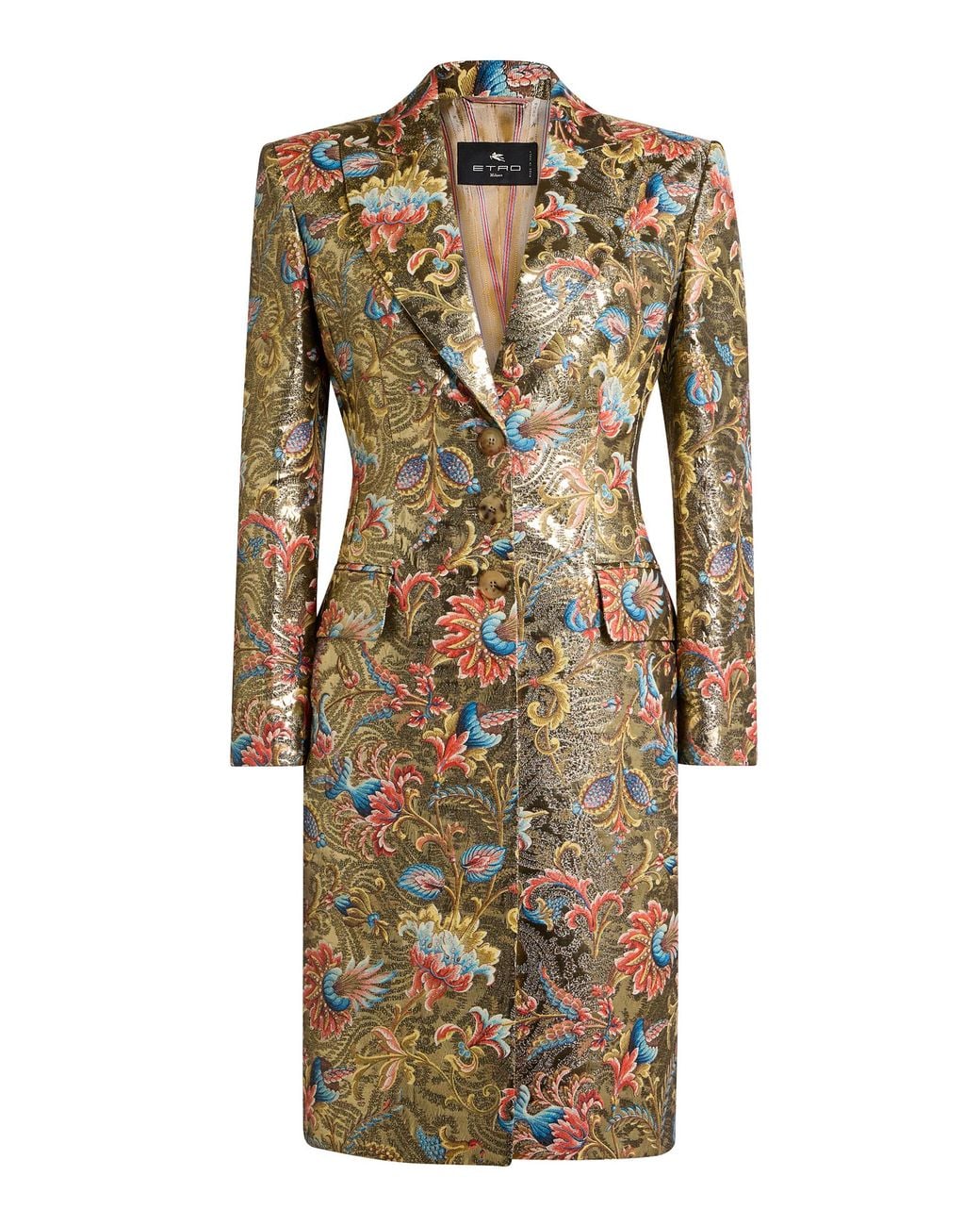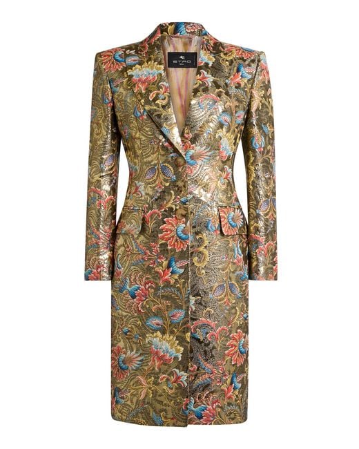 Creative director Marco De Vincenzo continues to redefine house codes by fusing the label's aesthetic (romantic; bohemian) with his own design principles (structured; graphic). Keeping a focus on archival prints; everyday staples get a younger feel while maintaining a certain visual boldness.This single-breasted dress coat is made from lustrous; lightweight brocade you can dress up with court shoes or down with denim. Colour: multicolour