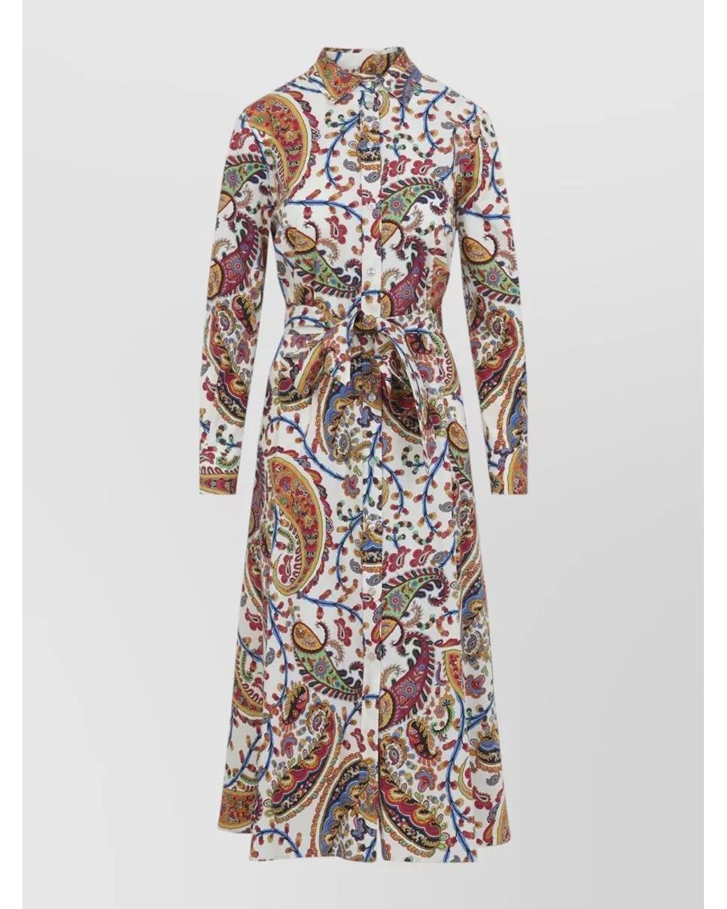 - Cotton Paisley-Print Belted Midi Shirt Dress