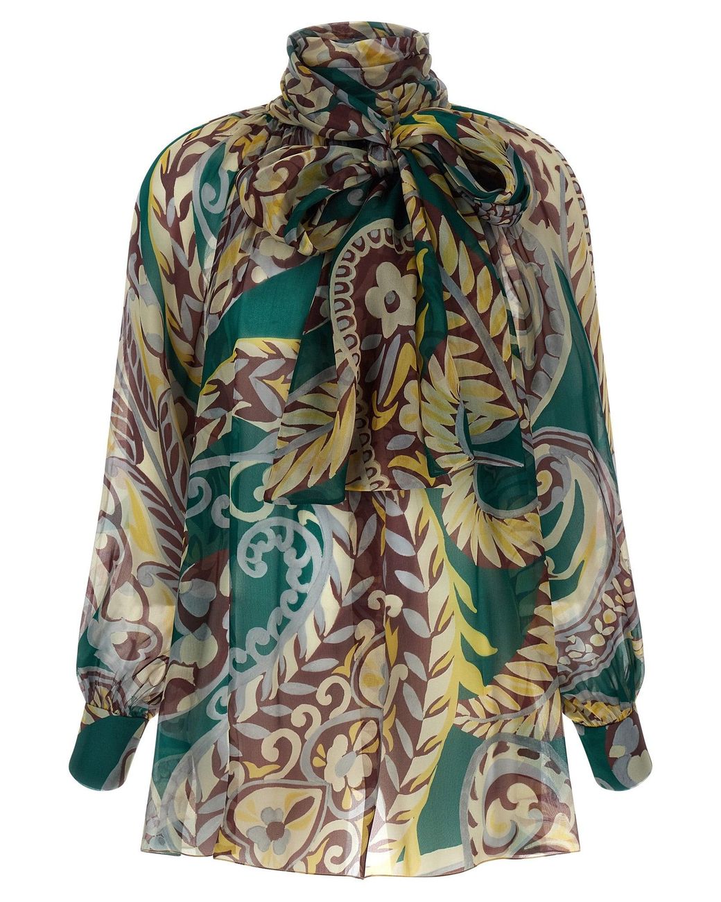 Women's Green Paisley Print Blouse Shirt And Blouse