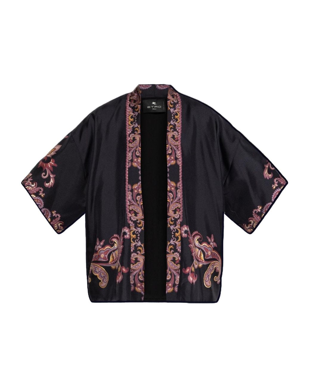 Silk Shirt With Placed Paisley Foliage Print - Blue