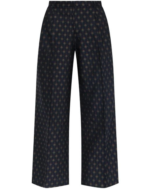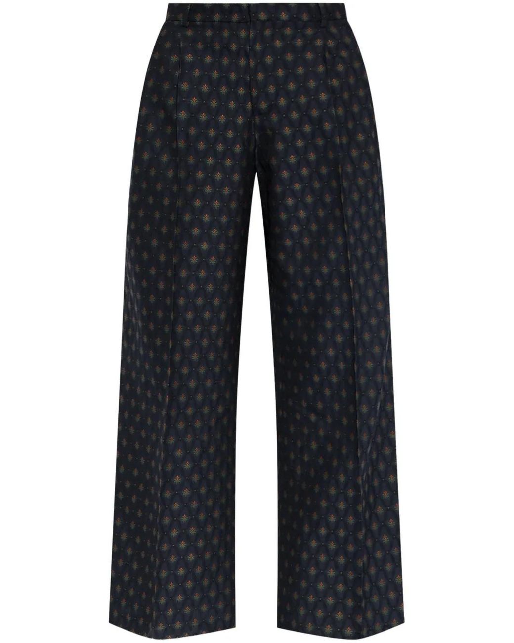 Navy blue/multicolour wool-cotton blend geometric print high-rise wide leg concealed front fastening pressed crease The crease-effect on this piece is very much intentional, no ironing necessary. Size: 40. Gender: Female. Material:Wool/Cotton.