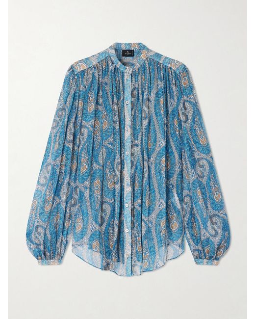 - Pleated Paisley-Print Silk-Crepon Blouse