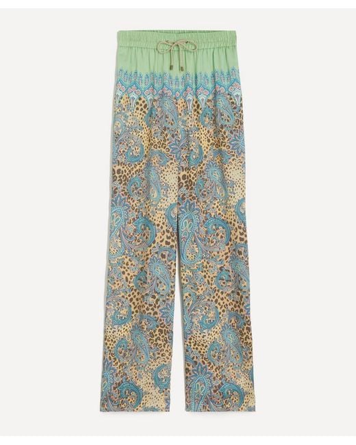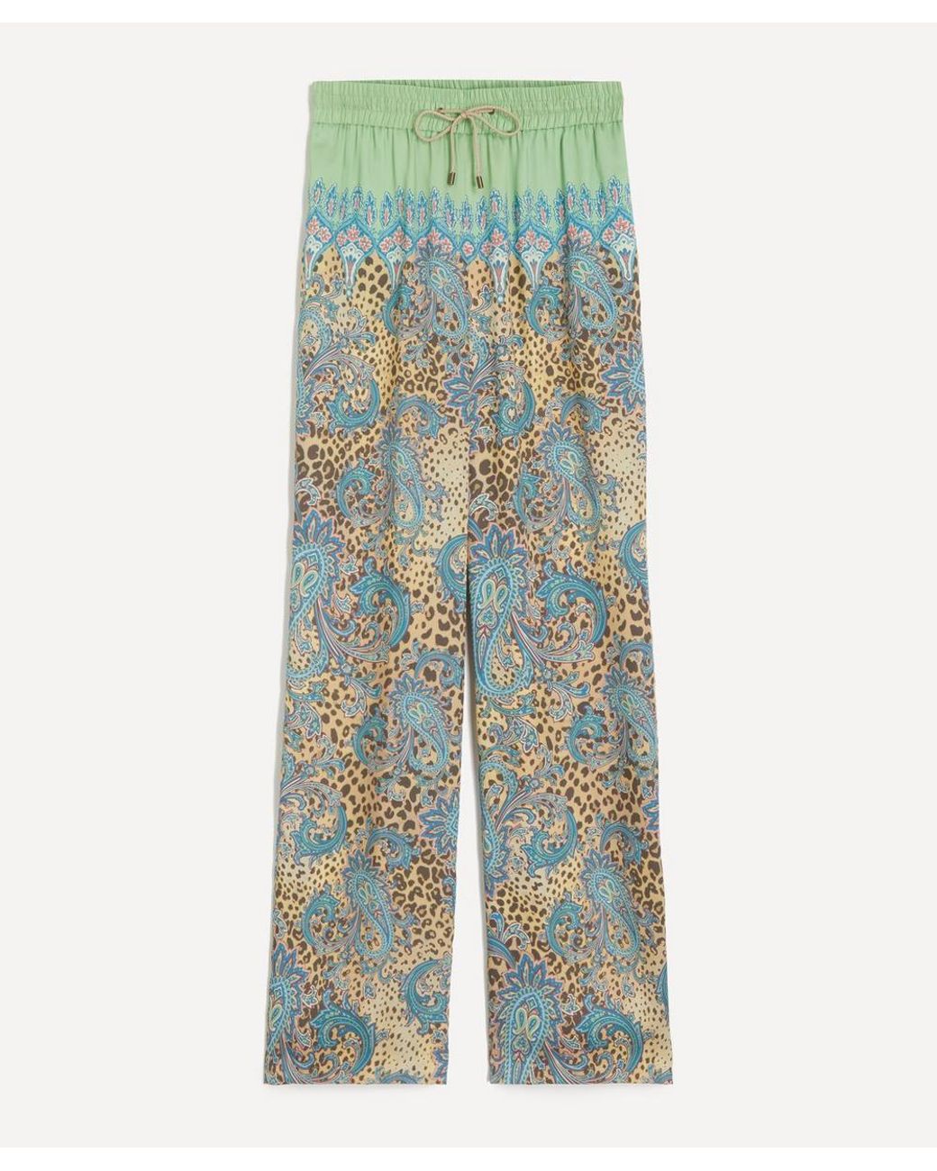 Etro's signature sense of luxe decadence defines the animal paisley print trousers. Expertly crafted in italy from lightweight crepe adorned with a vibrant leopard paisley print, these jogger-style trousers feature a relaxed, wide-leg silhouette complete with an elasticated drawstring waist for a comfortable fit. Colour: green
