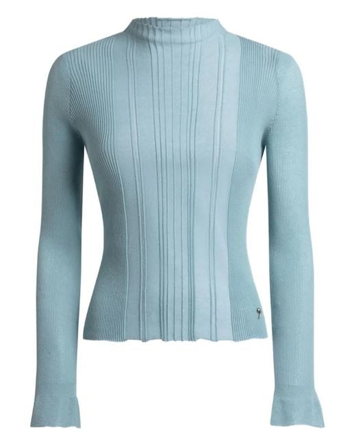 Blue see-through raised collar long sleeves ribbed detailing flared cuffs Size: 38. Gender: Female. Material:Cotton/Fabric. Colour: blue