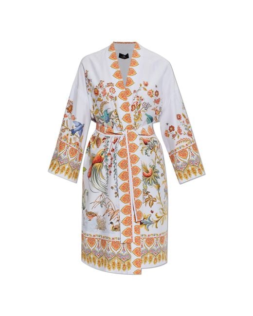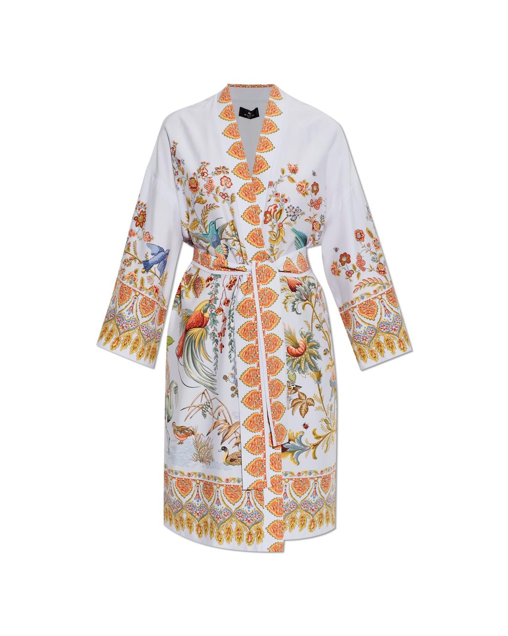 material, highlights the noble simplicity of the design. WHY BUY THIS PRODUCT? * Luxurious, highest-quality silk * Exceptional, oriental decorative motif throughout * Light blue colour emphasizing the delicacy and rarity of the design * Unique cut with wide kimono sleeves and decorative border * Design by the renowned brand Etro Colour: white