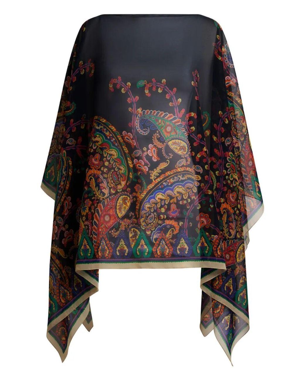 - Silk Poncho Top With Placed Floral Paisley Print