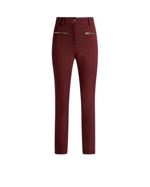 Slim-fit trousers in plain-coloured two-way stretch fabric. These feature two zipped front welt pockets which are finished with a button with a raised Pegaso symbol at the closure. Slim fit Concealed zip and Pegaso button closure Zipped front welt pockets Made in Italy The model is 5' 9½" (177 cm) tall and wears a size 40 Colour: red