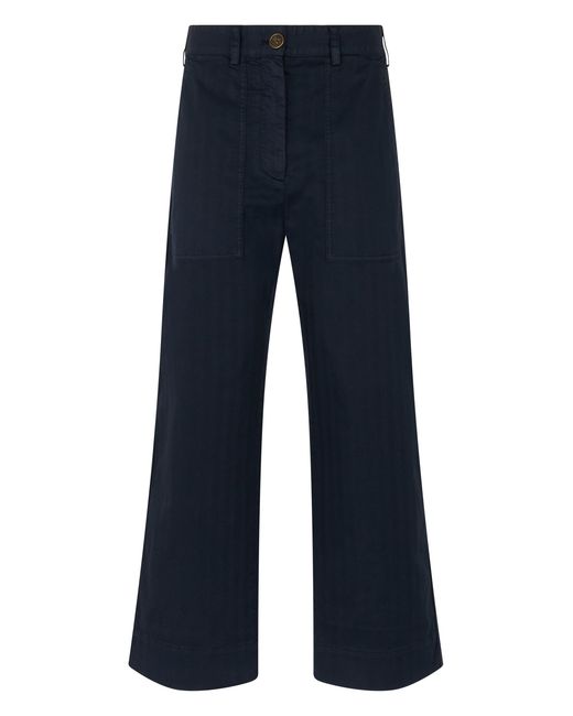 Women's Blue Straight Cotton Trousers