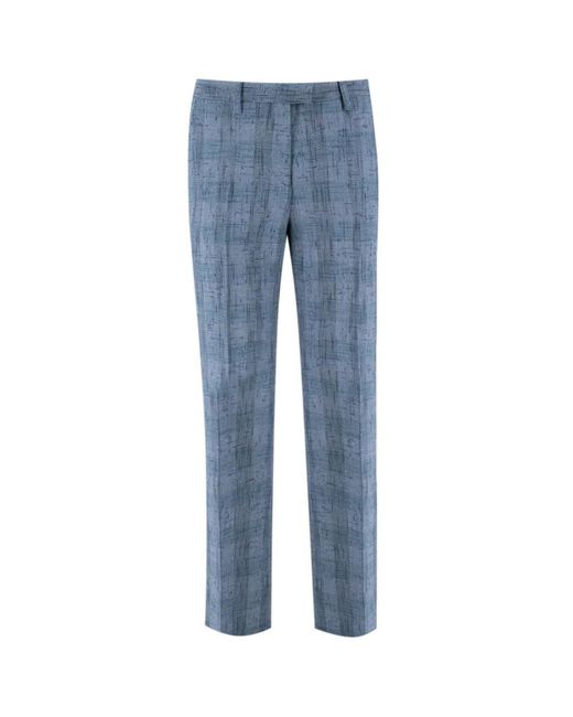 Elevate your wardrobe with these straight-fit trousers from Etro, crafted from a luxurious linen blend. Featuring an ironed crease and an all-over flamed check pattern, these trousers offer a sophisticated look for any occasion. Key attributes: Multicolour | Blue | Linen Blend | Hook and zip fastening | Pockets on the hips and back with buttons | Ironed crease | All-over flamed check pattern | Dimensions & fit: Regular fit | Composition & care: 36% Linen | 30% Viscose | 18% Cotton | 16% Polyester