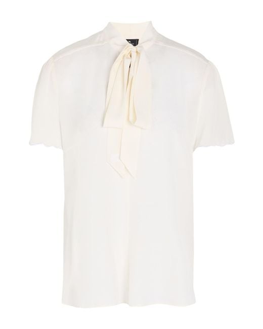 ETRO. bow blouse, crepe, plain colour, no appliqués, short sleeves, dry clean, do not bleach, do not tumble dry, be the best-dressed bridesmaid or wedding guest with this designer piece, perfect for any ceremony. 100% Silk.