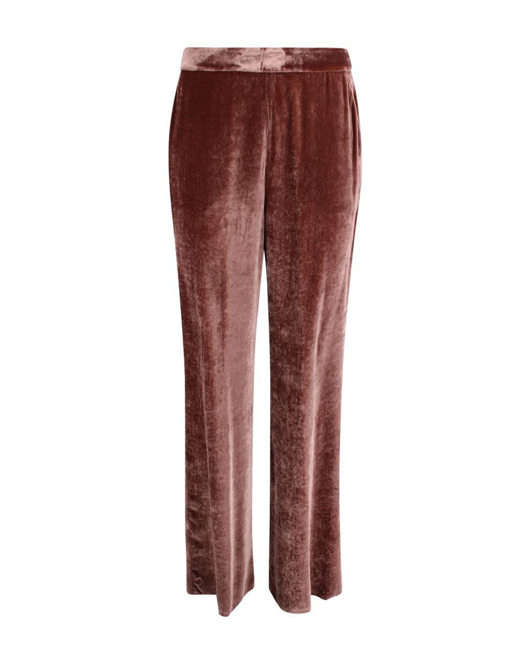 High-waisted trousers in a silk blend, featuring an elasticated waistband and a straight cut, designed to offer comfort and a soft fit. Main features: Color: Dark pink Waist: High and elasticated Details: Two side welt pockets Cut: StraightComposition: 80% Viscose, 20% Silk Colour: brown