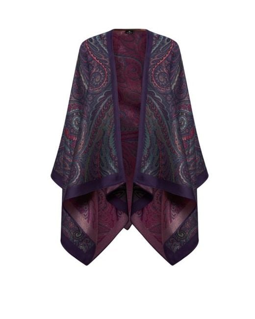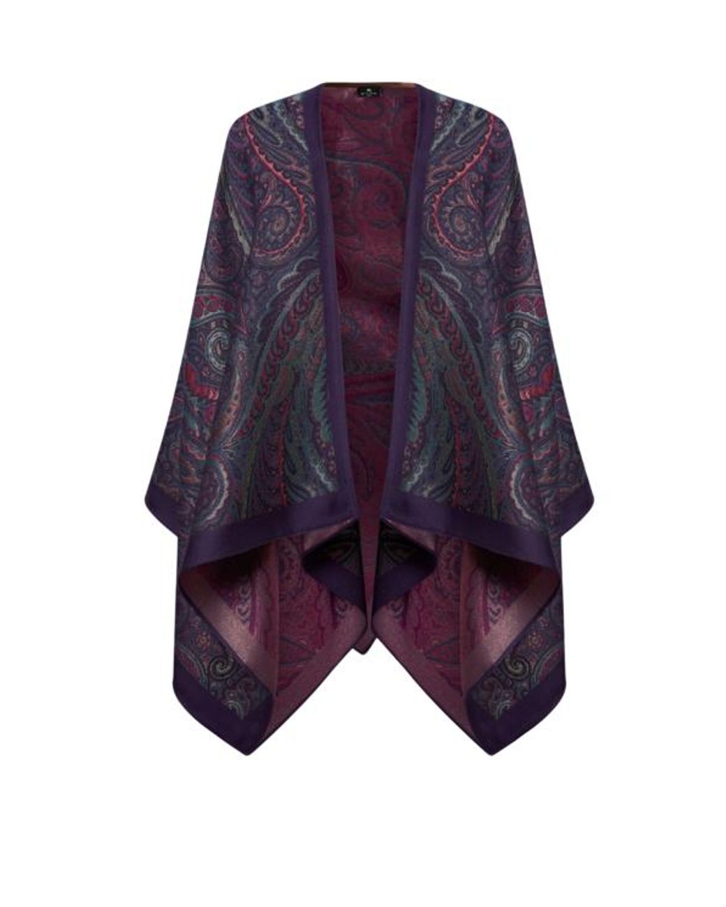 Wool-blend jacquard cape. The all-over Paisley motif is enhanced by lurex detailing. Contrasting edges Made in Italy Colour: purple