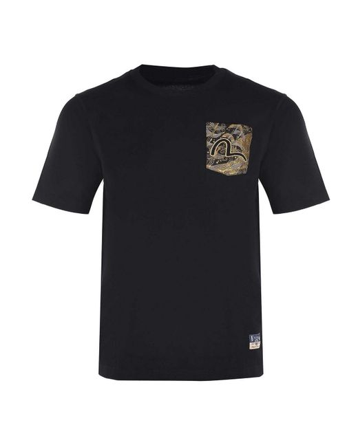 T, shirt evisu black short sleeves raised pocket on the with contrasting embroidered logo Colour: black