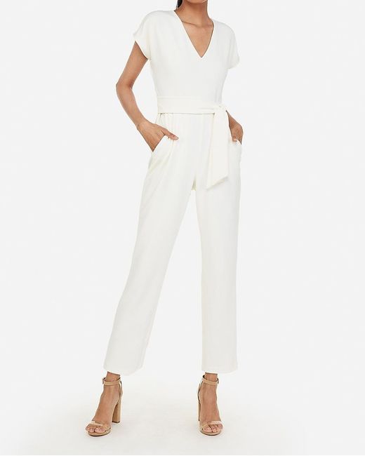 With a tailored look you can take to events or dress down for casual outings, this v-neck jumpsuit promises a flattering fit with its waist tie and tapered leg to show off a shoe. For lasting comfort and style, this one is an easy choice. Colour: white