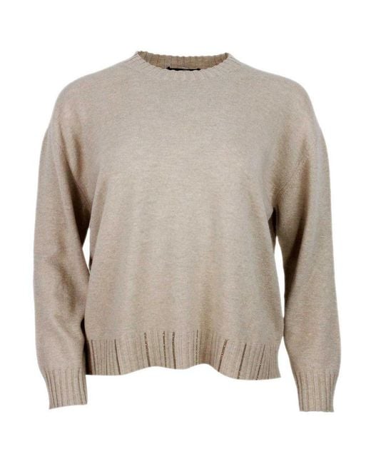 Elegant Round Neck Knit Jumper With Embellished Detail For Stylish Comfort - Natural