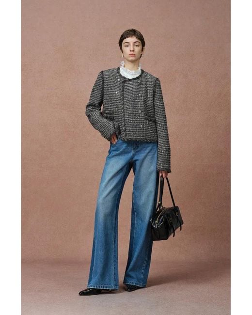 Women's Blue Sloane Double Breasted Metallic Trim Tweed Jacket